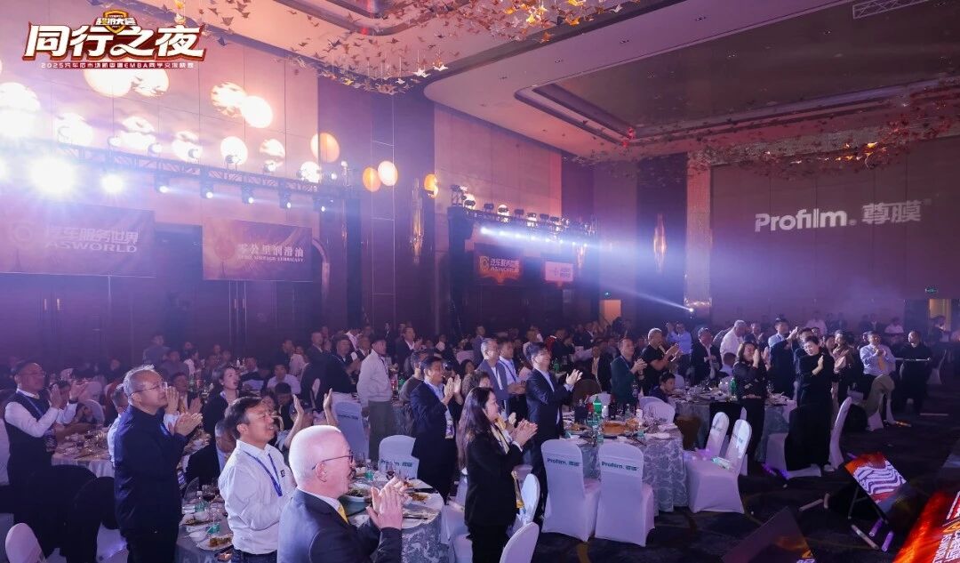 2025年11月24日晚,上海虹桥绿地铂瑞酒店,由汽车服务世界主办、Profilm尊膜独家冠名的“Profilm尊膜同行之夜·汽服同学会EMBA交流晚宴”温情举办。