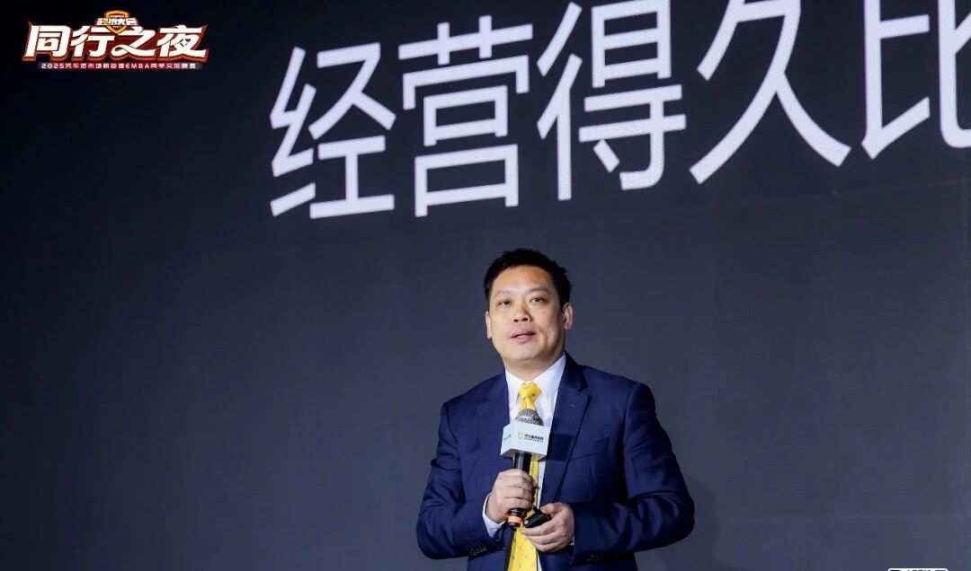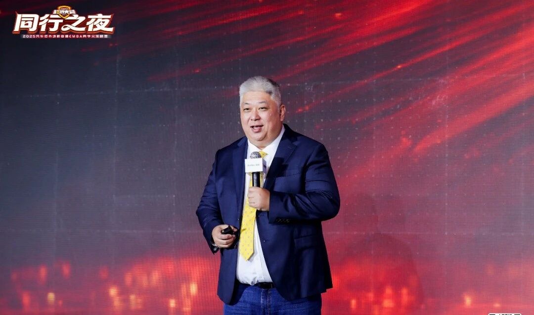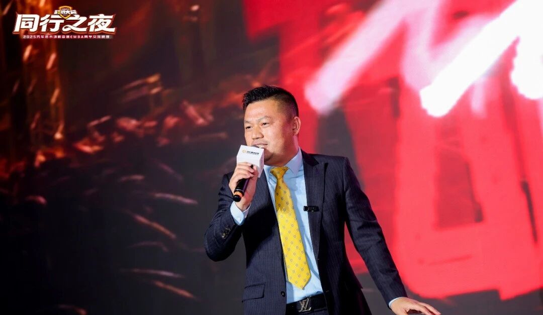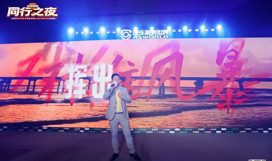在大东哥的致辞后,本次晚宴的主办方汽车服务世界CEO胡军波上台,讲述EMBA的历程及变化。